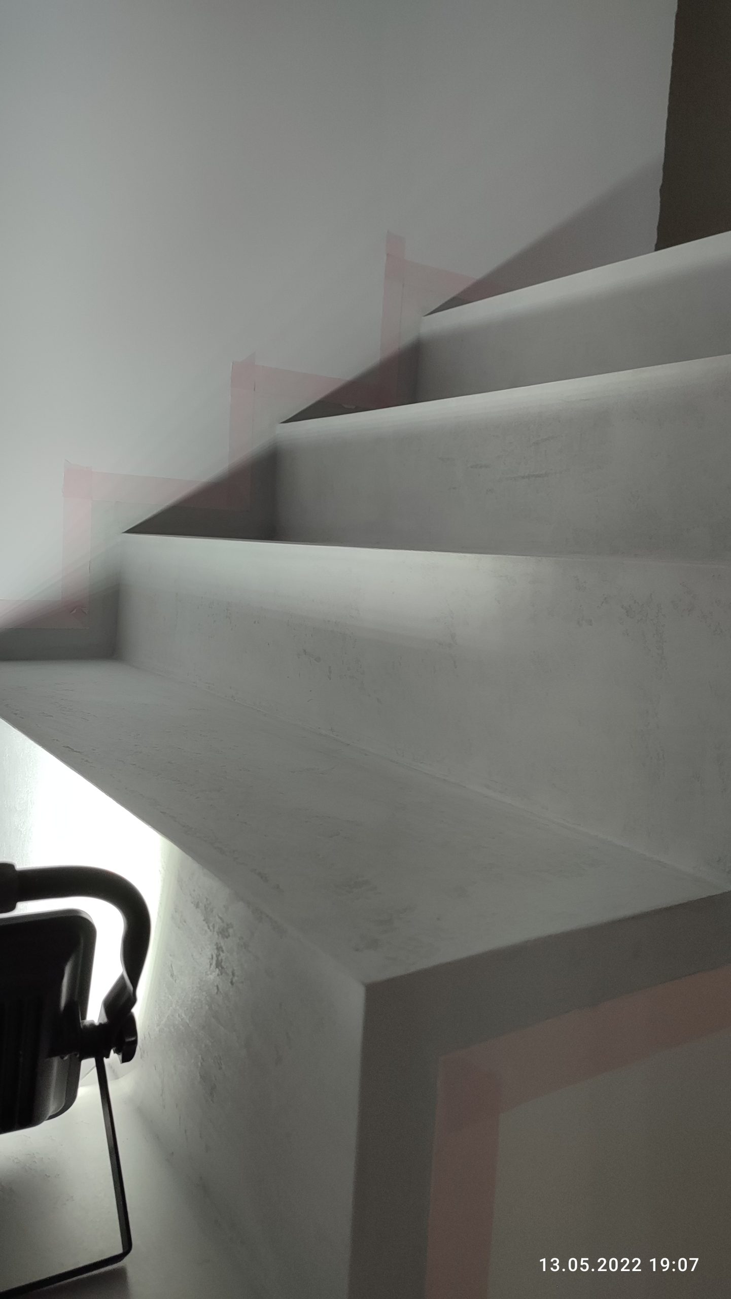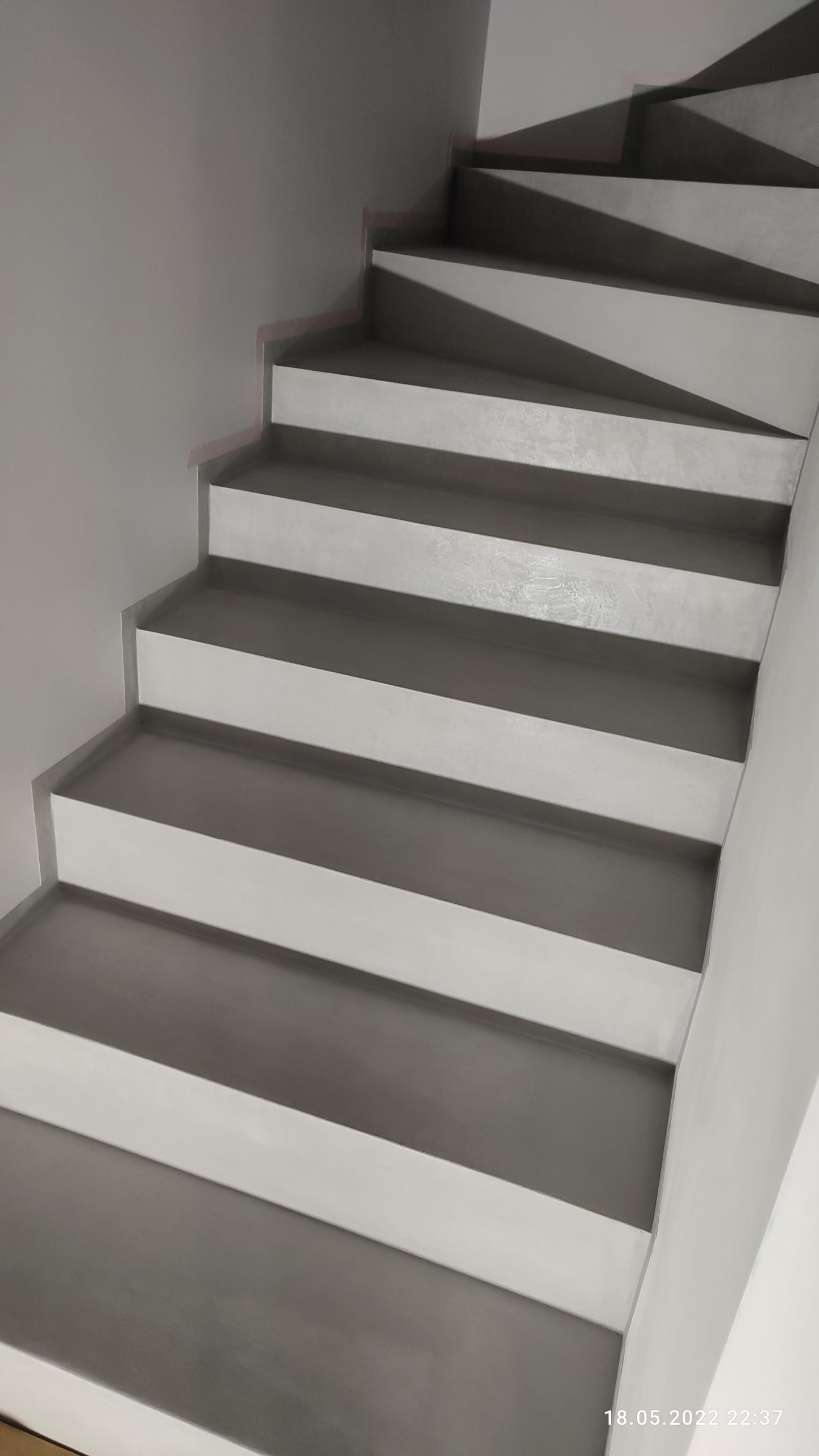 Ważne, aby podczas wykonywania pokrycia schodów mikrocementem nie porównywać własnego dzieła do innych efektów, każdy fachowiec ma inną rękę i każda wykonana dekoracja jest oryginalna i niepowtarzalna.