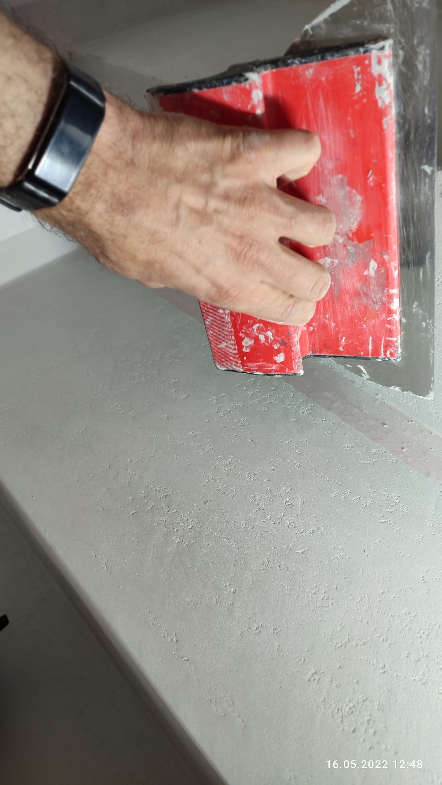 Trzeba przy tym pamiętać, aby wcześniej przetestować efekt na mniejszej powierzchni, najlepiej na takim samym podłożu aby chłonność powierzchni była taka sama, zapewnimy sprzyjające warunki aby efekt był identyczny. Przed przystąpieniem do wykonannia dekoracji efektu betonu architektonicznego należy pamiętać aby schody były wcześniej wyrównane i pokryte podkładem kwarcowym, lub systemowym mostkiem sczepnym.